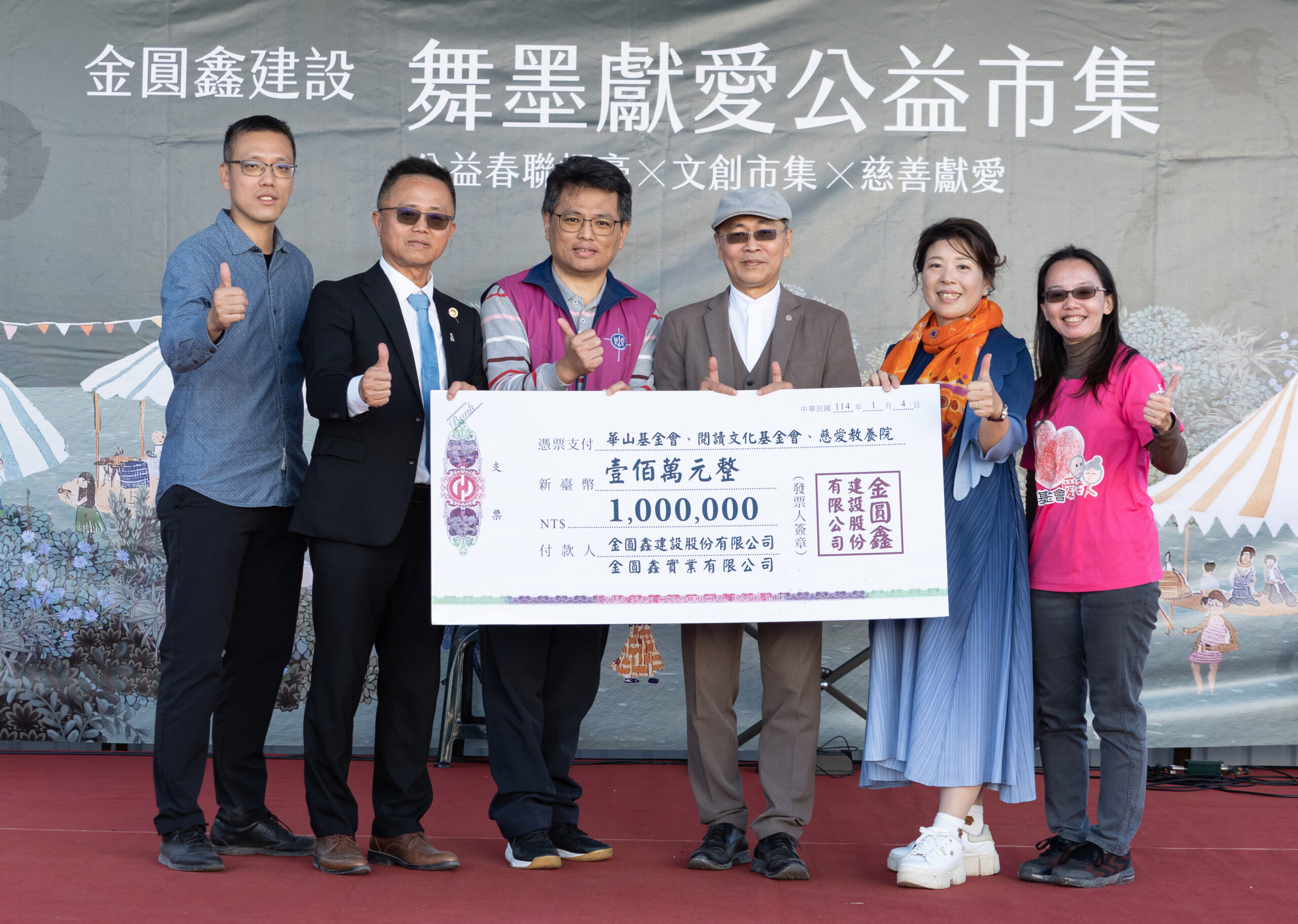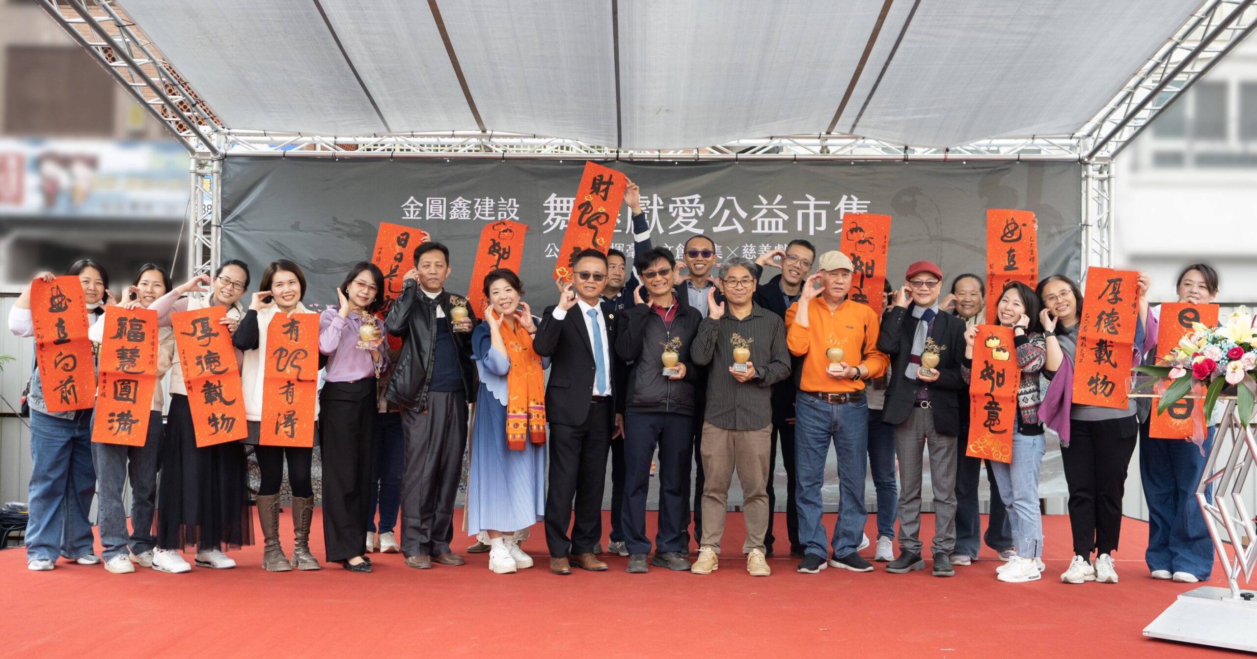 於1月4日,金圓鑫建設於彰化崙平南路隆重舉辦「2025舞墨獻愛公益市集」,延續其母公司金圓鑫實業深耕公益的使命。本次活動特別邀請國寶級書法大師現場揮毫春聯進行義賣,吸引眾多民眾踴躍參與。每售出一幅春聯,金圓鑫建設即加倍捐助,並將全數善款現場捐贈給三大公益單位,包括財團法人華山社會福利慈善事業基金會、財團法人台灣閱讀文化基金會及財團法人天主教會臺中教區附設臺灣省私立慈愛教養院,為地方孤老、身心障礙者及學童閱讀教育盡一份心力。